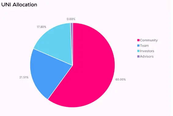 इस कॉइन की टोटल सप्लाई 1B UNI है। इसका टोकेनोमिक्स कुछ इस प्रकार है