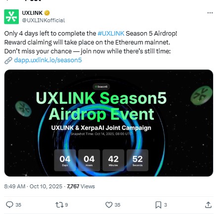 UXLINK एक नया Web3 Social Platforms है, जो ब्लॉकचेन और एक्चुअल सोशल इंटरैक्शन को एकसाथ जोड़ता है। UXLINK का एयरड्रॉप अभी लाइव है, जहाँ इन्वेस्टर्स आसान टास्क पूरा करके फ्री $UXLINK Token अर्न कर सकते हैं। यह प्रोजेक्ट यूज़र्स को रियल कनेक्शन, NFT वाउचर्स और फेयर रिवार्ड सिस्टम प्रोवाइड करता है। वहीं, यह प्रोजेक्ट्स Upcoming Crypto Airdrops में UXLINK तेजी से पॉपुलर हो रहा है, क्योंकि यह सोशल नेटवर्किंग और ब्लॉकचेन को मिलाकर नए इन्वेस्टर्स के लिए एंटरटेनिंग और रिवॉर्डिंग एक्सपीरियंस देता है।